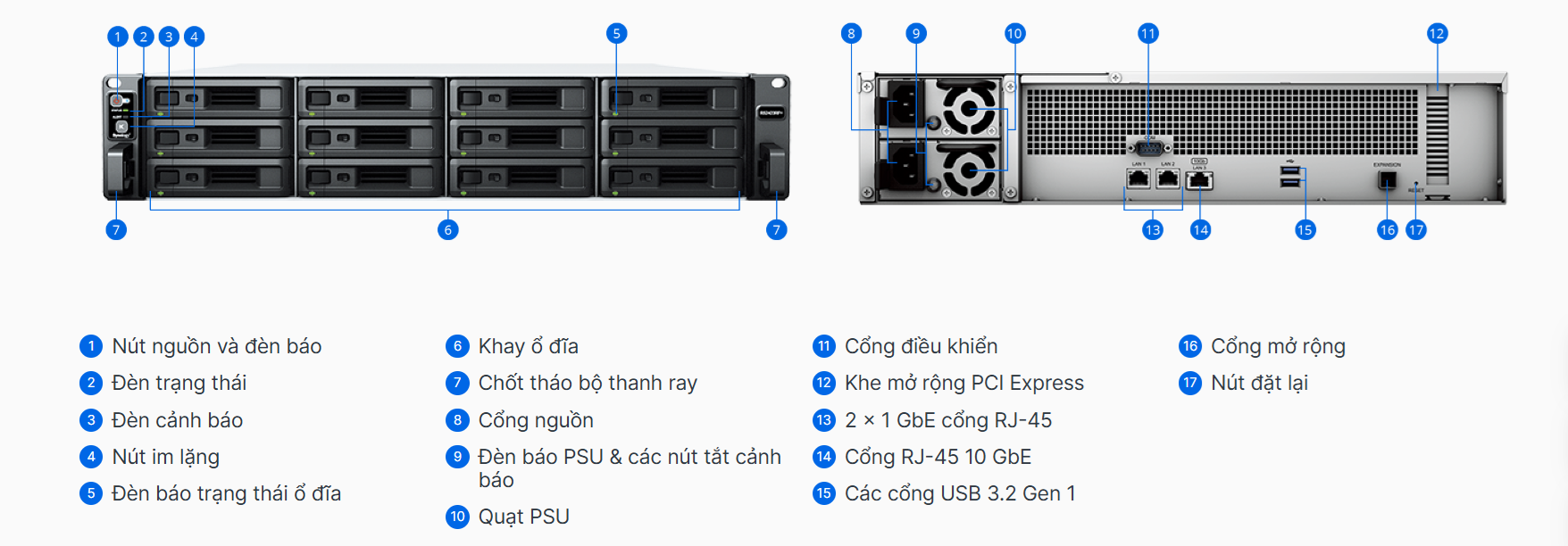 - Storage: 12 khay ổ đĩa có thể mở rộng 24 khay với RX1223RP.
